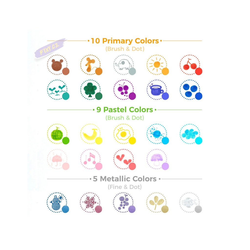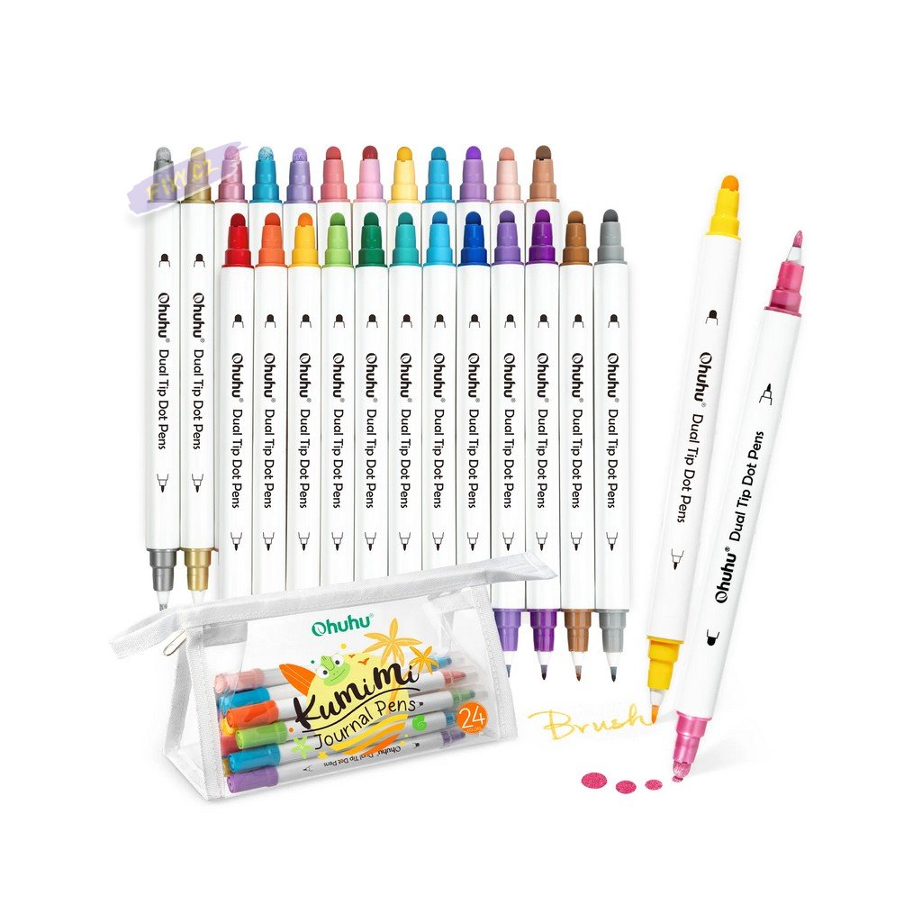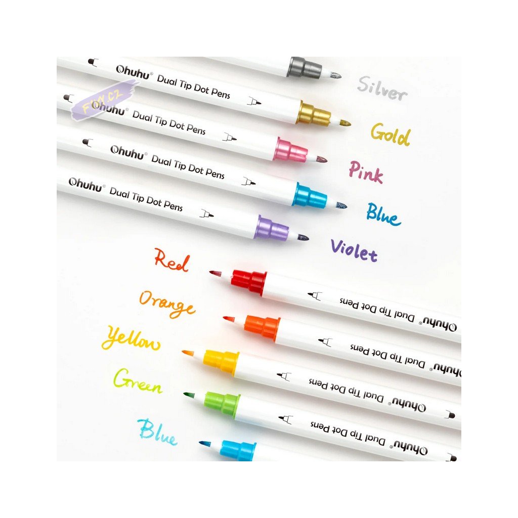 Tečkovací fixy OHUHU Dots Dual Tip, 24ks v pouzdře