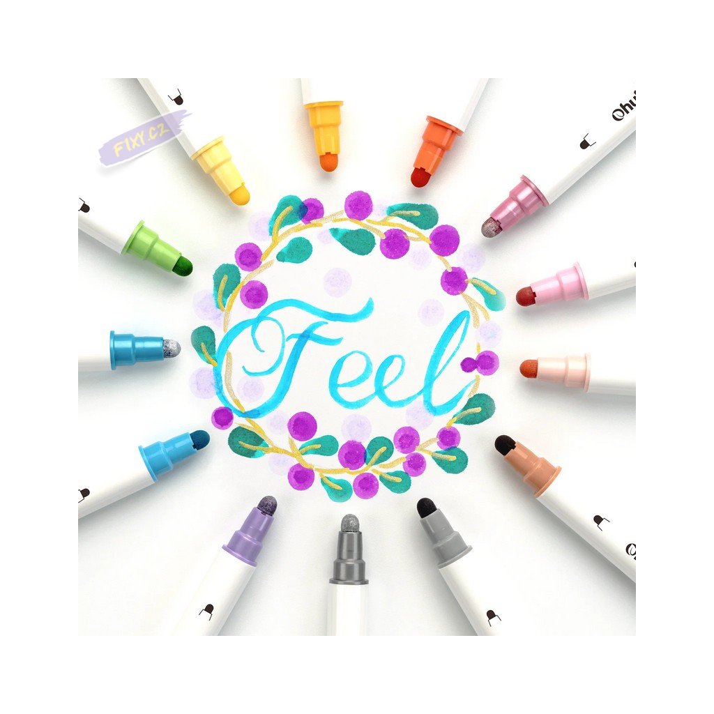 Vytvořte dvojité umělecké dílo pomocí jednoho tečkovacího fixu. Použijte pevný tenký hrot a flexibilní kulatý hrot pro různé styly, jako jsou obrysy, jemné detaily nebo výraznější linie. Rozdílný tlak aplikovaný na hrot vytváří různé velikosti bodů pro ještě více možností. Můžeme s radostí kreslit s vědomím, že tyto fixy jsou vyrobeny z netoxického inkoustu na vodní bázi.
