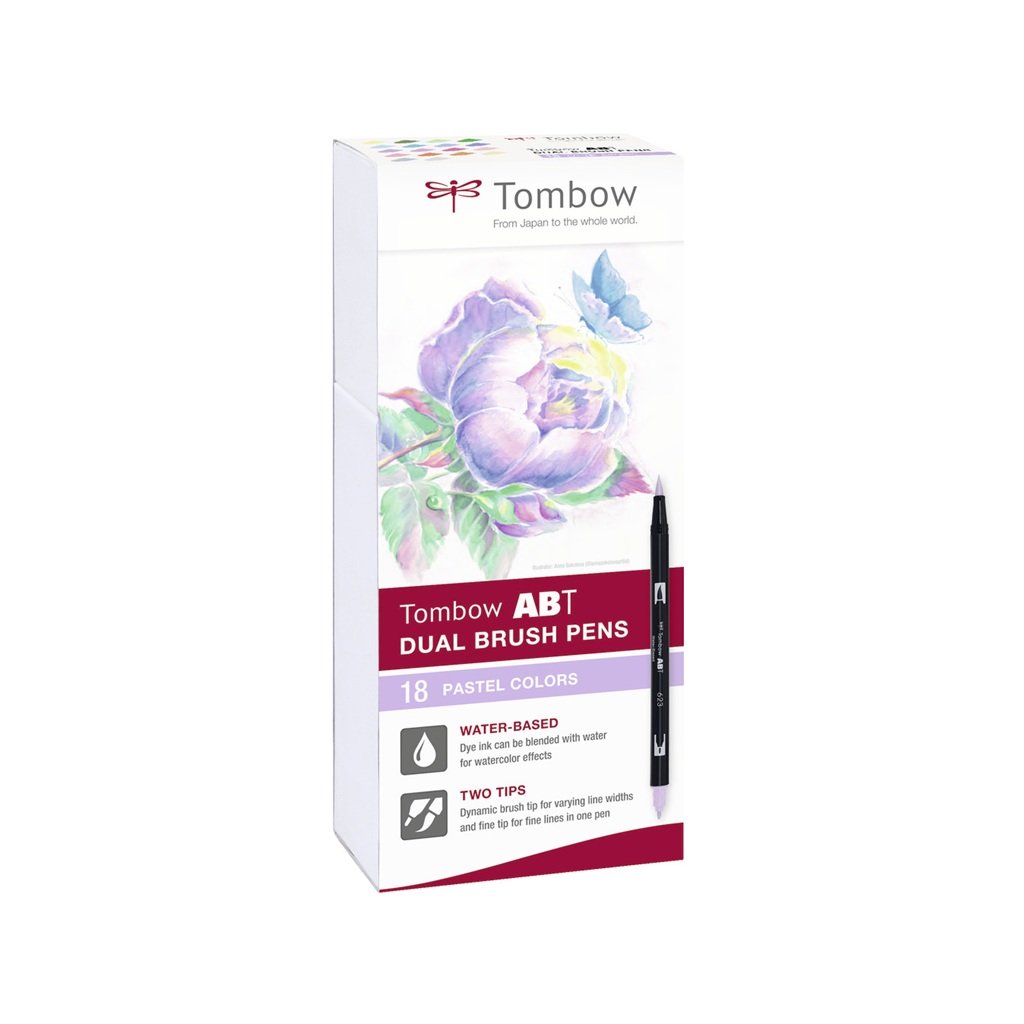 Akvarelové oboustranné fixy TOMBOW ABT, 18 ks pastelové