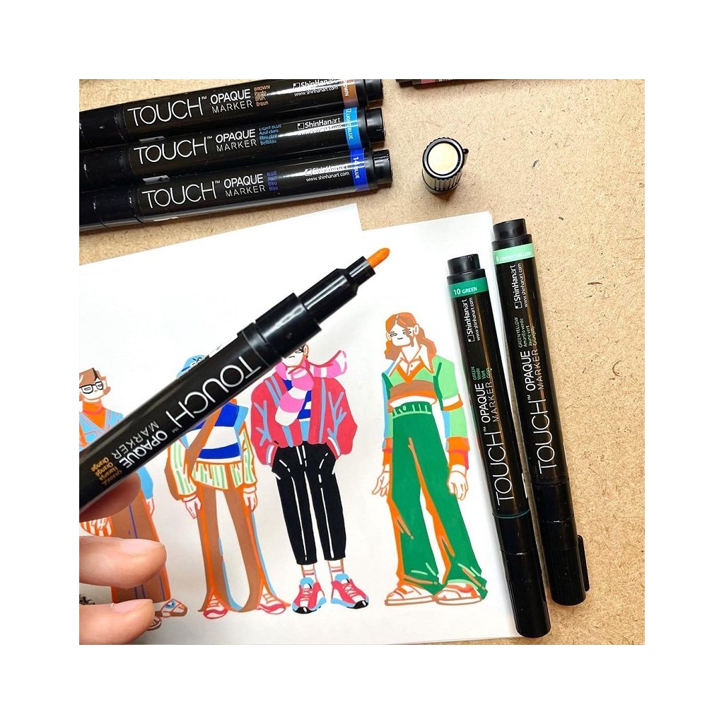 Inkoustové pigmentové popisovače od značky TOUCH na vodní bázi jsou vynikající kreativní nástroj pro velmi odolné a živé vybarvení detailů. 100% čistý pigmentový inkoust je mimořádně bohatý na pigmenty a jeho jedinečné složení inkoustu na vodní bázi zaručuje nesrovnatelně zářivé krycí barvy se silnou světlostálostí, které vyniknou na světlých i tmavých površích a nabízejí neomezené možnosti. Všestranný TOUCH Opaque Marker lze použít prakticky na všechny povrchy jako je papír, dřevo, plast, kov, sklo, guma, polystyren, látka, kůže, keramika a mnoho dalších. Ať už je povrch světlý nebo tmavý, drsný nebo hladký, i tak je velmi odolný vůči vodě a vyblednutí pro vnitřní i venkovní použití. Na většině hladkých, neporézních materiálech jako je sklo, PVC a kovové povrchy je snadno snímatelný.