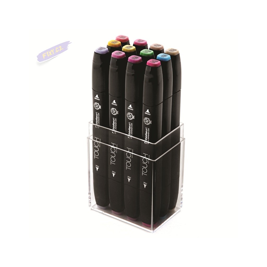 Jemný hrot na jedné straně a široký zkosený hrot na straně druhé popisovače TOUCH Twin Marker (bez štětečku) nabízí rozsah tlouštěk čar větší než kdykoliv předtím. Ergonomicky tvarované tělo obdélníkového tvaru braní kutálení se po pracovní ploše a umožňuje pohodlné odložení bez neúmyslných šmouh. Speciálně navržený bezpečnostní uzávěr pevně drží na popisovači a zabraňuje poškození hrotu. Twin Marker obsahuje inkoust na bázi alkoholu, který je rychleschnoucí, netoxický a vodě odolný.