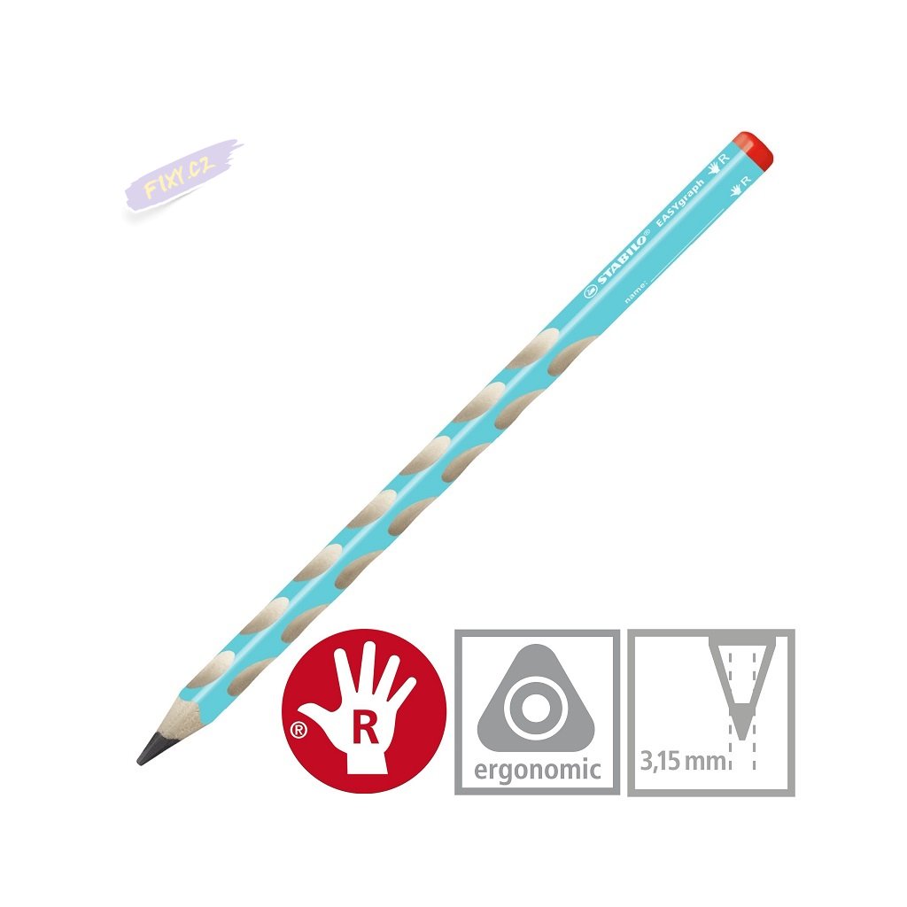 Ergonomicky tvarovaná grafitová tužka zvlášť pro leváky a pro praváky.