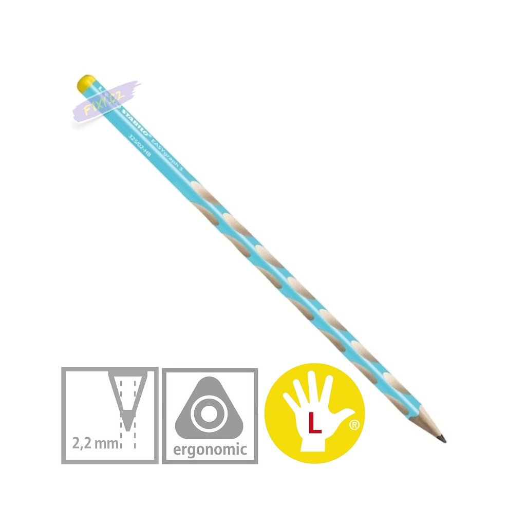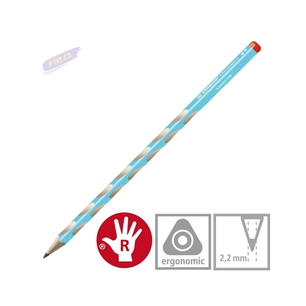 Ergonomicky tvarovaná grafitová tužka zvlášť pro leváky a pro praváky.
