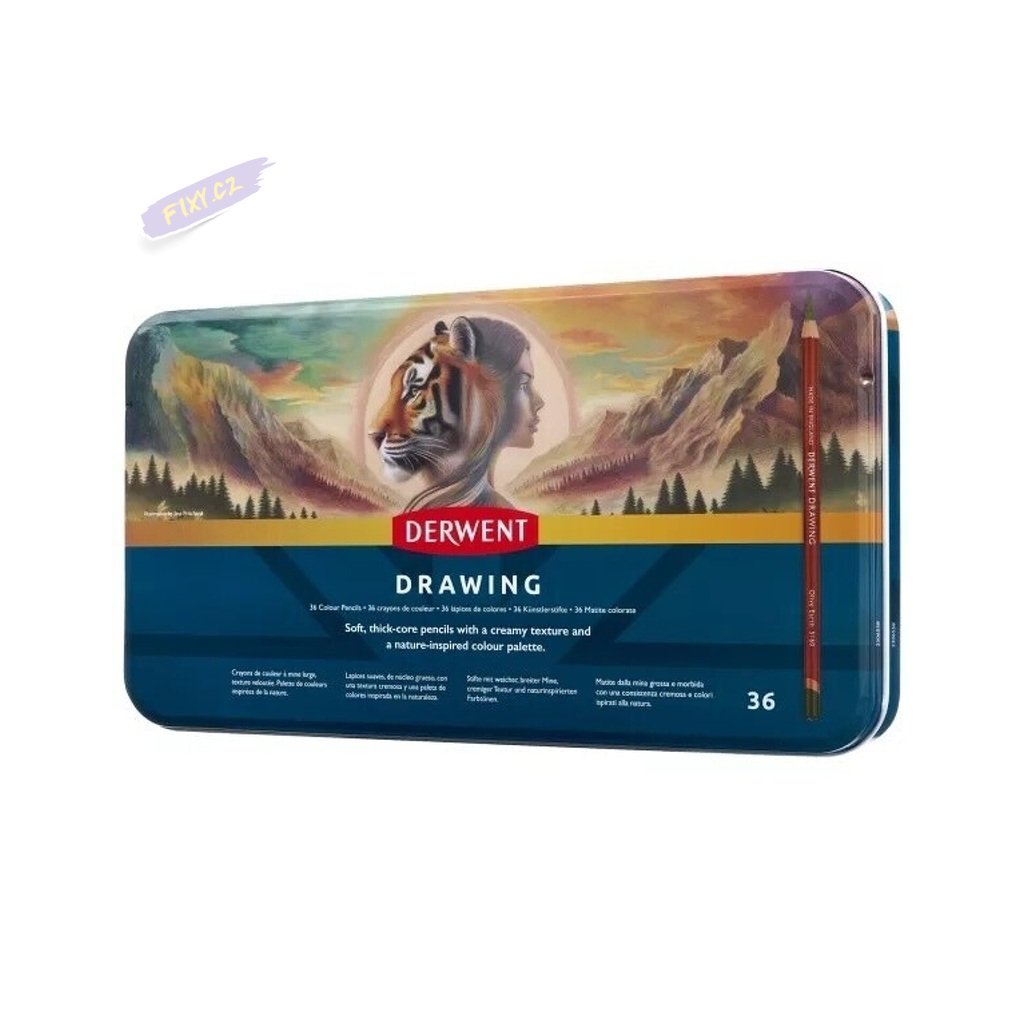 Umělecké pastelky DERWENT Drawing, 36ks v kovové krabičce