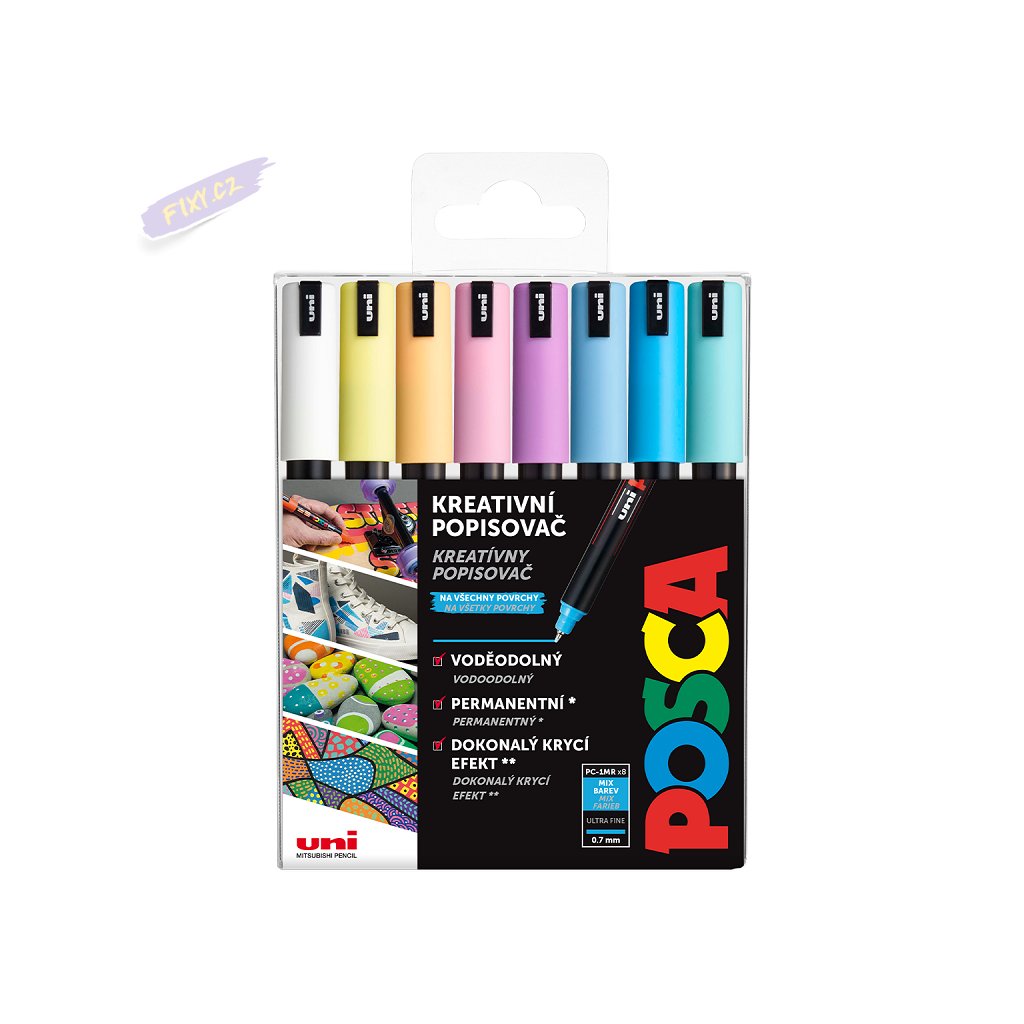 Akrylové fixy UNI POSCA 1MR, 8ks pastelové