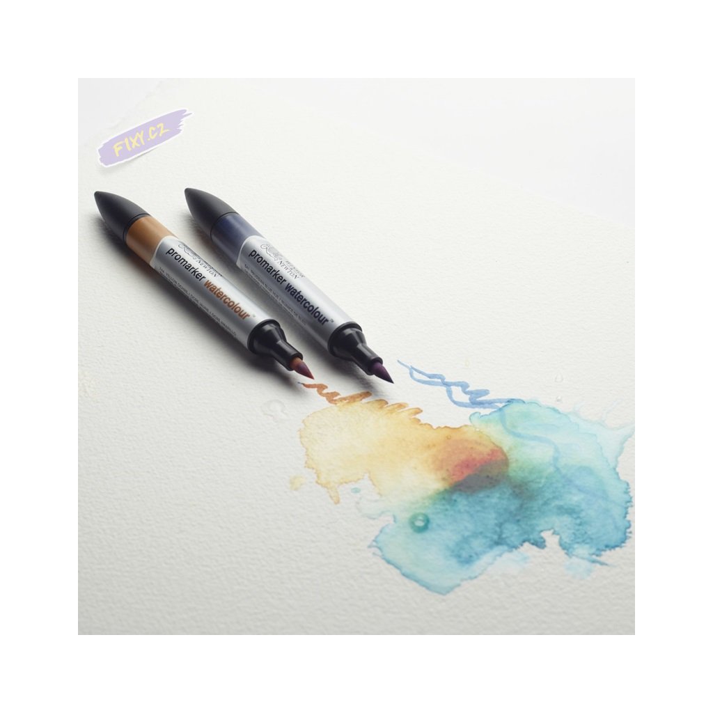 WINSOR & NEWTON Promarker WATERCOLOUR je oboustranný popisovač s inkoustem na vodní bázi. Každý popisovač má na jednom konci tenký pevný hrot a na druhém velký flexibilní štětcový hrot, který vám umožní vytvořit celou řadu různých tlouštěk čar i detailů.