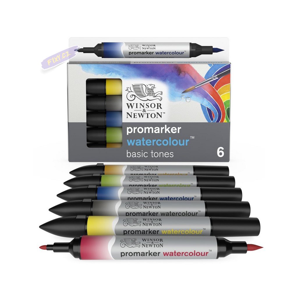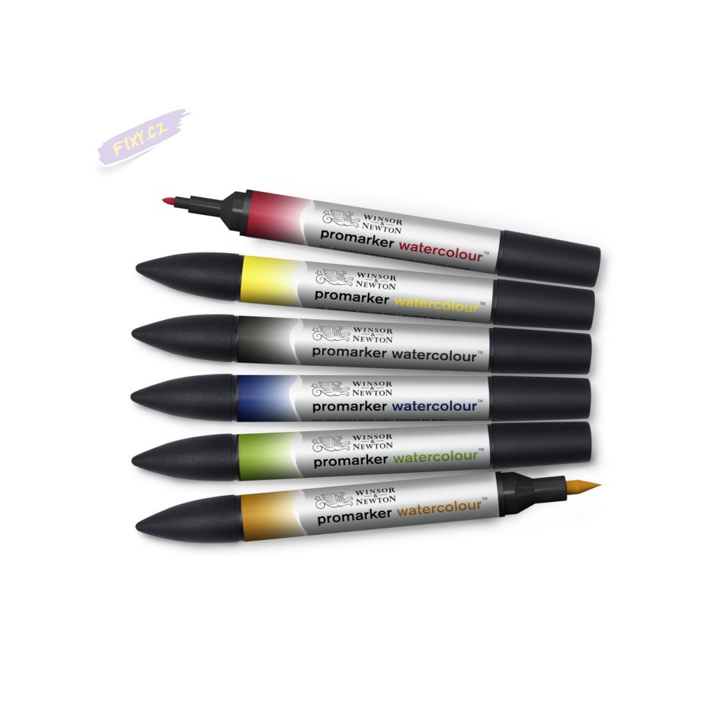 Akvarelové fixy WINSOR & NEWTON Promarker Brush & Fine, 6ks BASIC