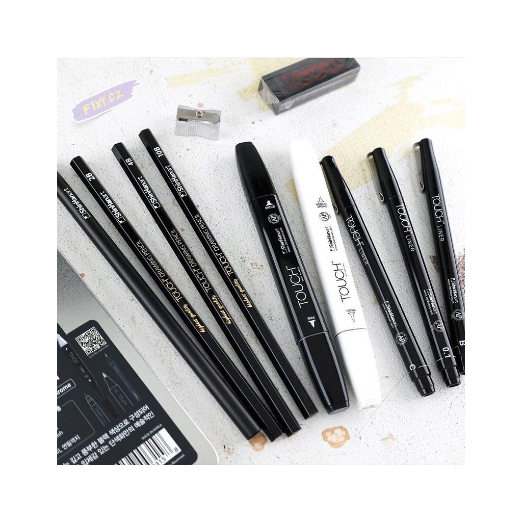 Štětečkový hrot na jedné straně a široký zkosený hrot na straně druhé popisovače TOUCH Twin Brush Marker nabízí rozsah tlouštěk čar větší než kdykoliv předtím. Ergonomicky tvarované tělo obdélníkového tvaru braní kutálení se po pracovní ploše a umožňuje pohodlné odložení bez neúmyslných šmouh. Speciálně navržený bezpečnostní uzávěr pevně drží na popisovači a zabraňuje poškození hrotu. Twin Marker obsahuje inkoust na bázi alkoholu, který je rychleschnoucí, netoxický a vodě odolný.