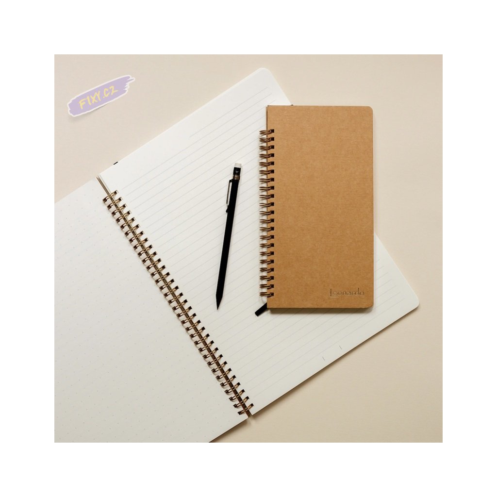 Zápisník Leonardo se hodí do školy, do práce, na doma, na výlety a je hezký i jako dárek. Praktický formát obálky, pevné desky a originální linko-tečkovaná lineatura dělají z tohoto zápisníku jedinečný produkt.