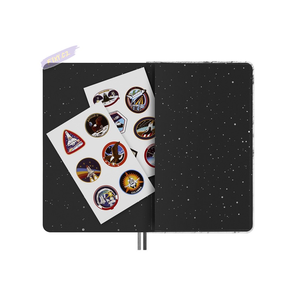 Zápisník Moleskine NASA velikosti L z kolekce NASA s 3D efektem desek. Tato kolekce, inspirovaná lunárním povrchem, oslavuje návrat lidstva k misím na Měsíc a přináší prostor k objevování fantazie i vyjádření nekonečných možností tvůrčí inspirace.