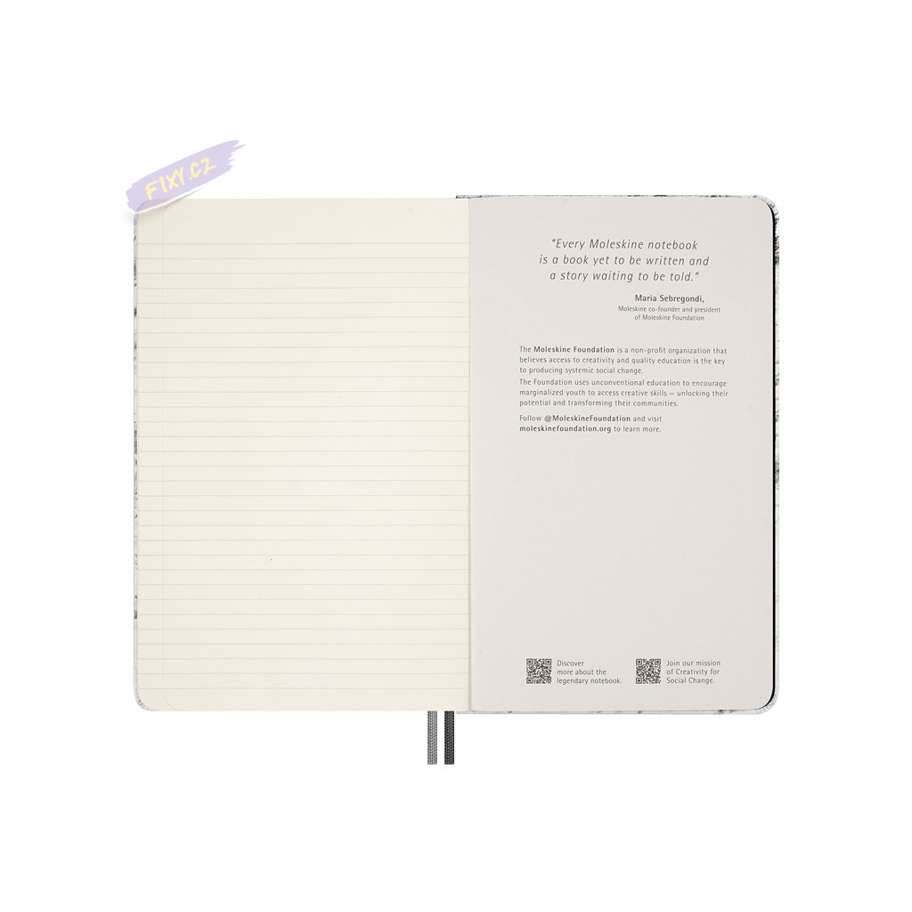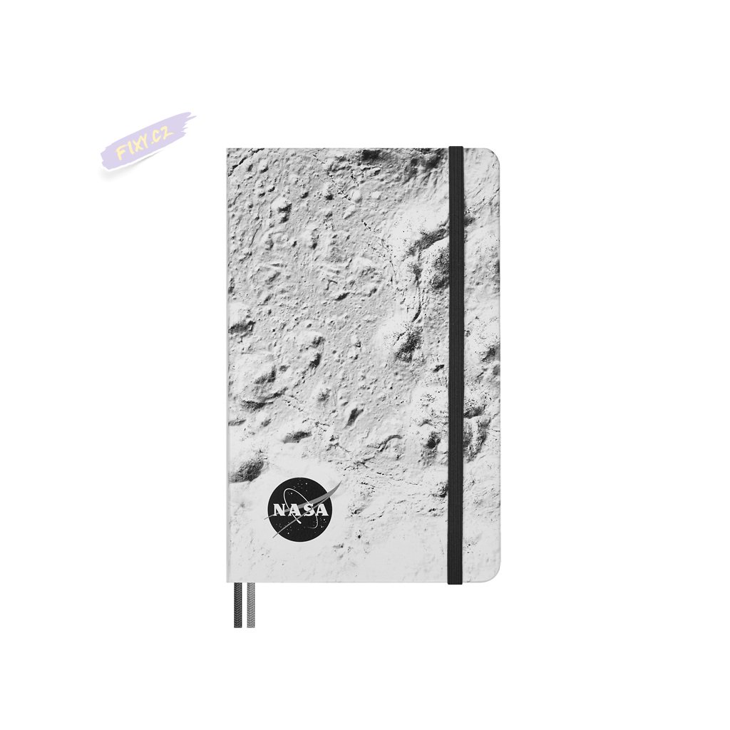 Zápisník Moleskine NASA velikosti L z kolekce NASA s 3D efektem desek. Tato kolekce, inspirovaná lunárním povrchem, oslavuje návrat lidstva k misím na Měsíc a přináší prostor k objevování fantazie i vyjádření nekonečných možností tvůrčí inspirace.
