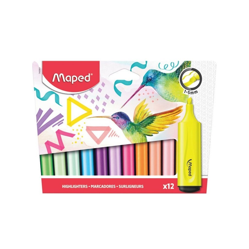 Zvýrazňovače MAPED Fluo Peps classic + pastel, 12 ks