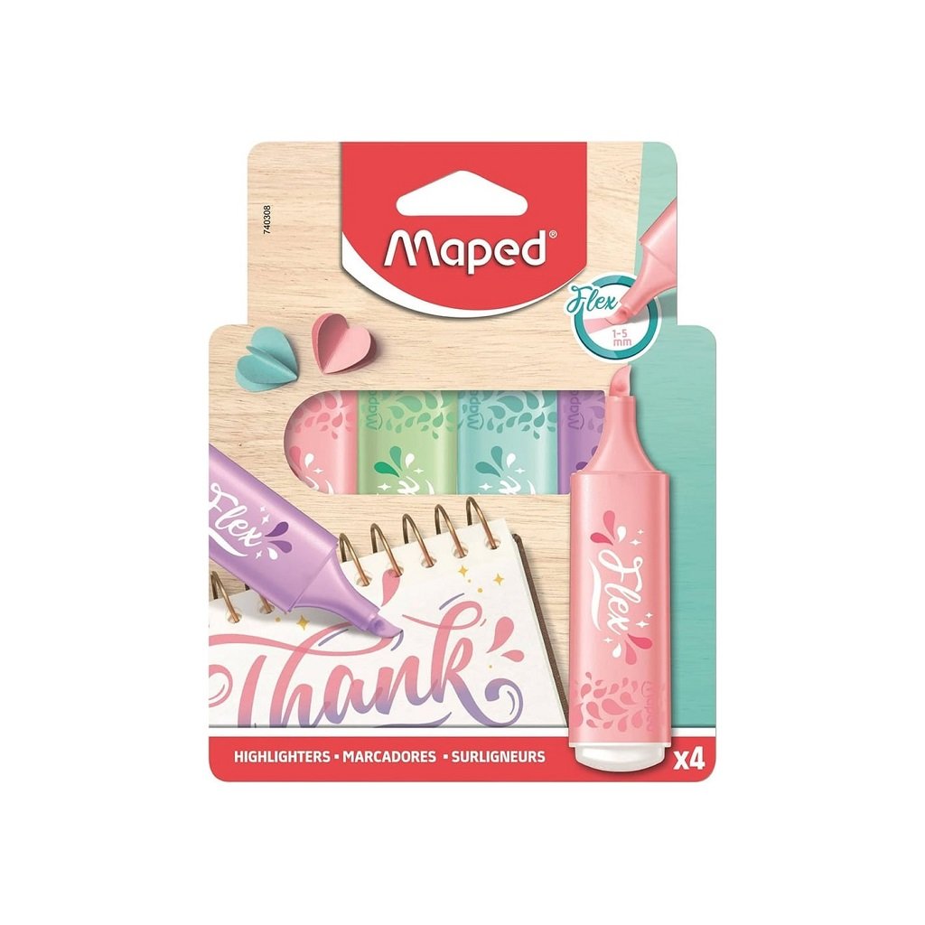 Zvýrazňovače MAPED Fluo Peps flex, 4 ks pastelové