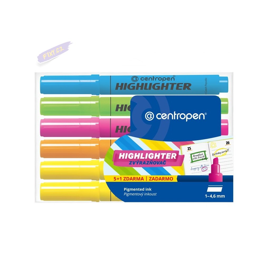 Zvýrazňovač silný CENTROPEN 8552/6, 5ks + 1ks ZDARMA