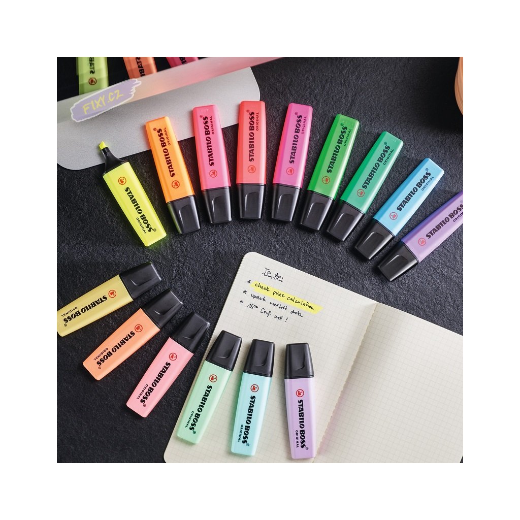 Od svého uvedení na trh v roce 1971 jsou zvýrazňovače STABILO stále velmi oblíbené po celém světe. Díky technologii STABILO Anti-Dry-Out vydrží bez víčka až 4 hodiny a nevyschnou. Náplň je na bázi vody a je zdraví zcela neškodná.