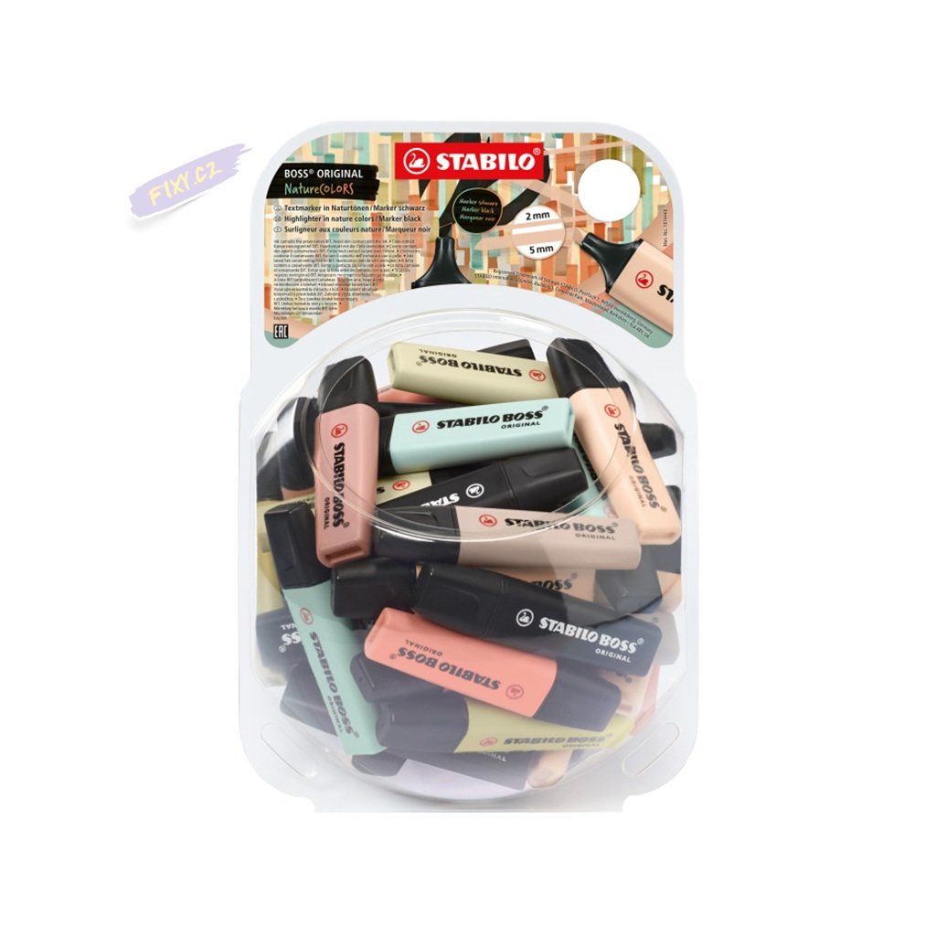 Zvýrazňovač STABILO BOSS ORIGINAL, nature 60ks ve stojánku