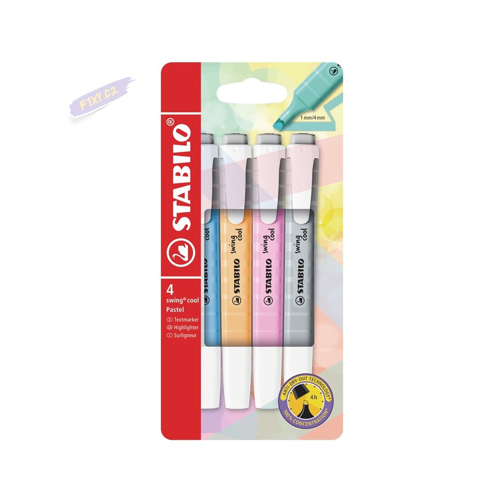 Zvýrazňovač STABILO swing cool Pastel, 4ks "C"