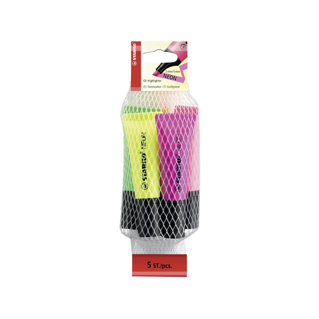 Zvýrazňovače STABILO NEON, 5 ks "B" v síťce